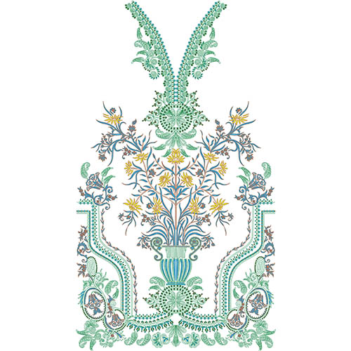 Elegant Traditional Floral Front Panel Embroidery Design with Ornamental Border