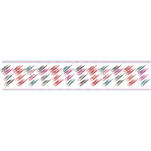 A modern embroidery-style textile border featuring abstract zigzag geometric strokes in soft multicolor tones arranged in a horizontal composition on a light background.
