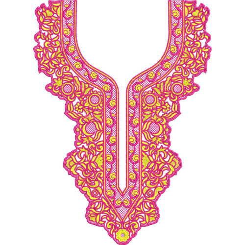 Kurtis, tunics, Pakistani suits, and dresses can all be embroidered with this embroidery neck pattern. This embroidery design can be downloaded right now.