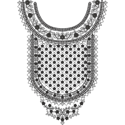 The monochrome black color makes this design timeless, versatile, and highly suitable for embroidery machines, hand embroidery, and digital textile printing. It works perfectly for kurti fronts, salwar kameez panels, festive outfits, ethnic wear, and boutique fashion collections. The combination of floral elegance and geometric precision gives this design a premium handcrafted appeal suitable for both personal and commercial use.