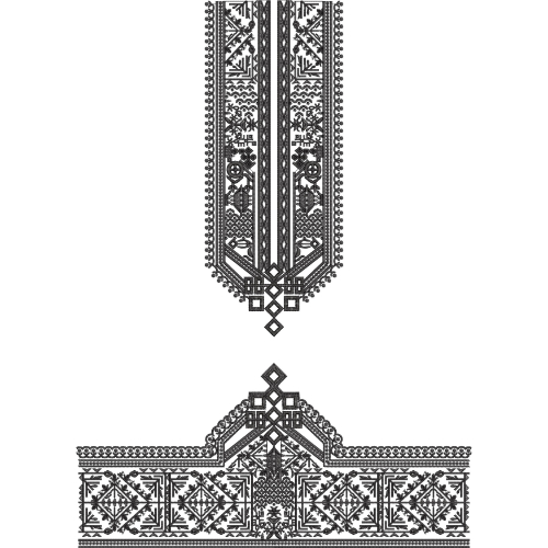 Designed as a high-quality illustration in 300 DPI high-resolution JPG format, this embroidery artwork is perfect for kurti fronts, kameez panels, ethnic wear, folk-inspired outfits, and machine embroidery applications. Its monochrome palette and strong geometric structure make it especially suitable for traditional, cultural, and heritage fashion designs.