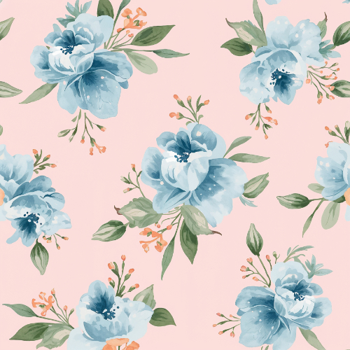 blue floral pattern, blush pink floral seamless design, botanical flower repeat pattern, watercolor floral textile print, vintage botanical fabric design, romantic floral surface pattern, pastel flower repeat pattern, elegant garden floral pattern, decorative floral seamless design, botanical floral textile
