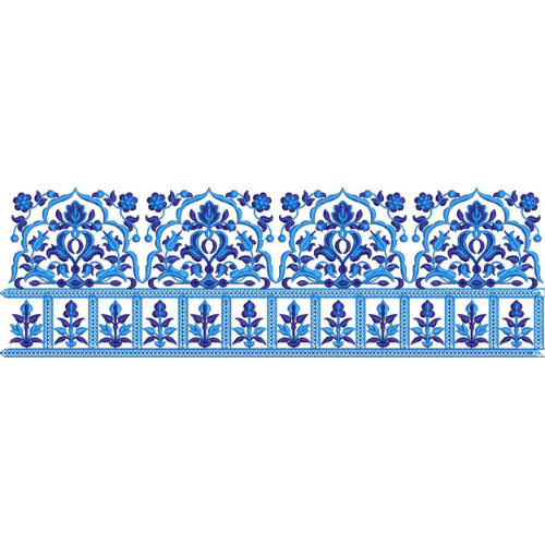 A classic embroidered border featuring symmetrical blue floral arches and leafy motifs, inspired by traditional ornamental patterns.