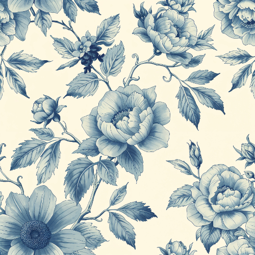 blue toile floral pattern, vintage botanical seamless design, classic blue flower repeat, toile botanical textile pattern, monochrome floral illustration pattern, vintage floral line art repeat, elegant botanical toile design, classic blue floral surface pattern, traditional toile flower pattern, botanical blue seamless repeat