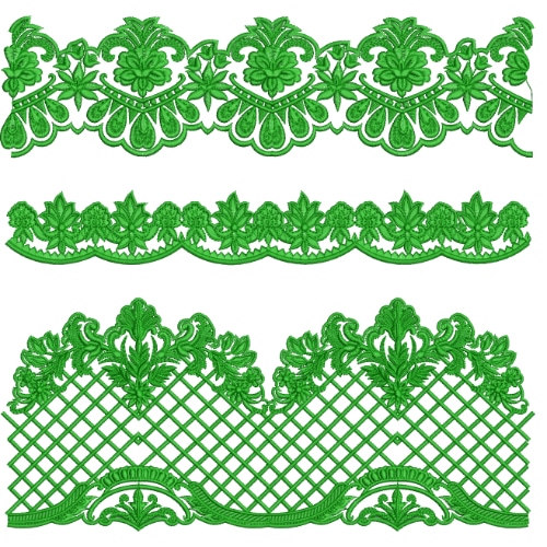 Classic Green Lace Embroidery Border Set with Floral Motifs and Lattice Pattern