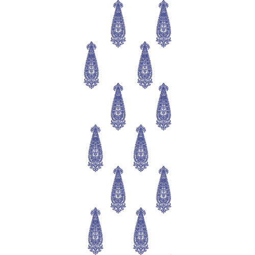 The elongated paisley shape adds a sense of vertical flow, making the design flattering and visually elongating when used on garments. The delicate detailing gives the impression of hand embroidery, ideal for premium fabric applications.
