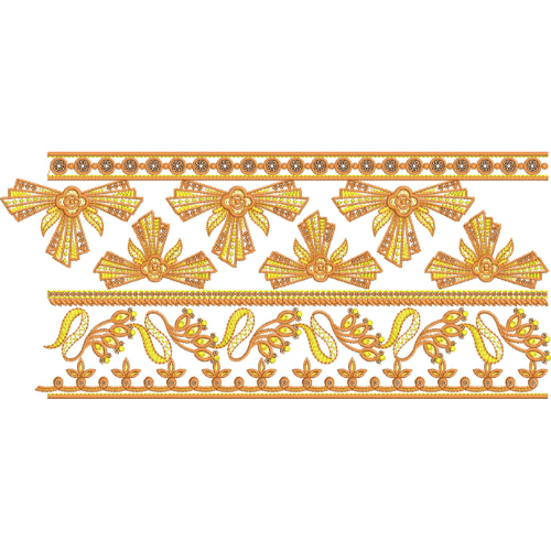 Decorative Ribbon Bow Lace Embroidery with Floral Vine Border Detailing
