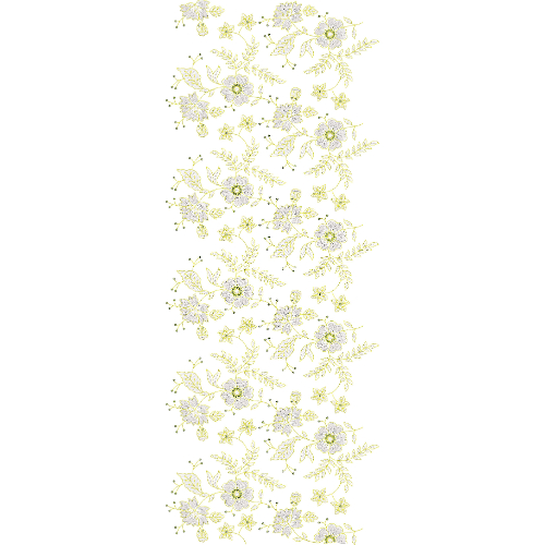 This all-over jaal embroidery design reflects a refined botanical aesthetic that combines subtle detailing with graceful repetition. Its harmonious flow and elegant lightness make it ideal for sophisticated garment surfaces requiring timeless and delicately embroidered coverage.