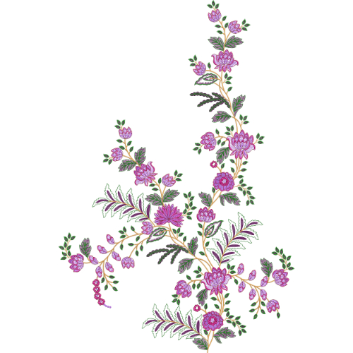 The embroidery-style stitching adds a handcrafted and premium feel, while the balanced placement of floral elements makes the motif versatile for various textile applications. The soft color palette combined with clean detailing ensures the design remains subtle yet visually appealing.