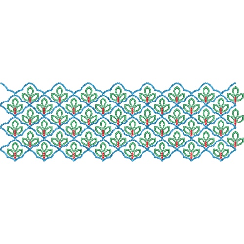 Delicate Floral Lace Embroidery Border Design with Repeating Motifs and Scalloped Edge