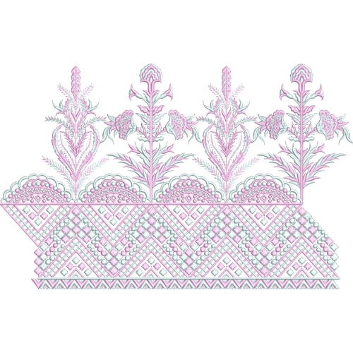 Delicate Pastel Floral Lace Embroidery Design with Lattice Base and Ornamental Motifs