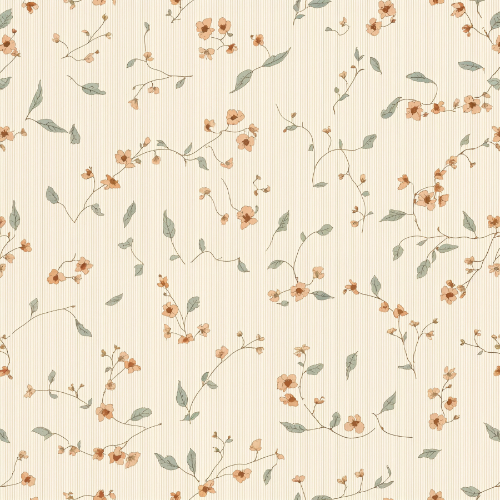 This elegant seamless pattern features a delicate botanical arrangement of tiny wildflowers illustrated in a soft watercolor style. The design showcases small blossoms in warm peach and soft apricot tones that create a light and charming floral palette. Each flower is painted with gentle shading and fine botanical detailing, giving the pattern a natural hand-painted appearance.