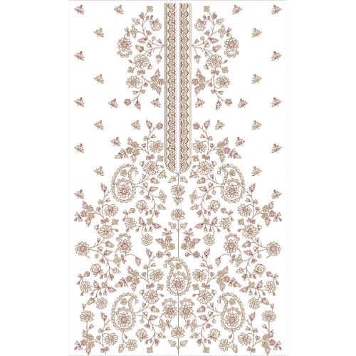 The use of soft beige and earthy tones enhances the timeless and sophisticated appeal of the design. The combination of delicate floral vines with structured neckline detailing results in an elegant embroidery pattern ideal for formal wear, festive attire, and premium ethnic fashion collections.
