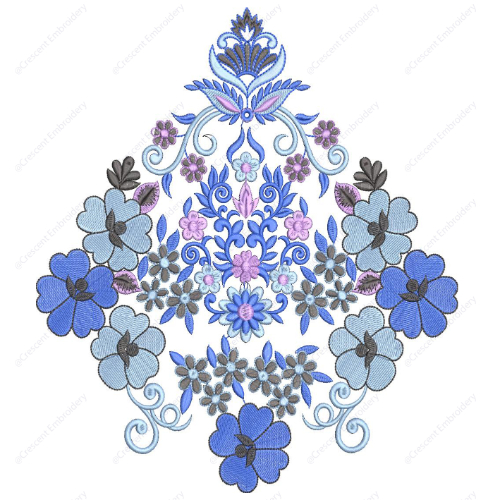 Elegant Blue Floral Cushion Embroidery Design with Ornamental Symmetrical Arrangement