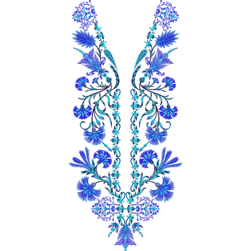 The design has a refined, embroidery-inspired look, making it ideal for traditional and contemporary fashion applications. The floral elements are detailed with fine linework and decorative textures, giving the pattern a handcrafted and premium appearance. The elongated structure naturally follows the neckline shape, making it especially suitable for kurtis, kameez, abayas, long shirts, and formal ethnic outfits.