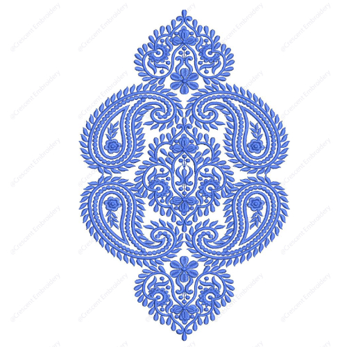 Elegant Blue Paisley Cushion Embroidery Design with Ornamental Symmetrical Detailing
