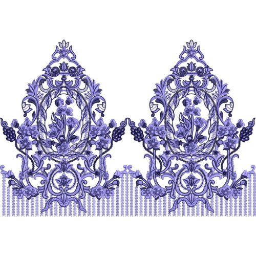 A refined embroidered border design featuring symmetrical ornamental arches with delicate floral detailing, ideal for luxury textile borders and elegant fabric applications.