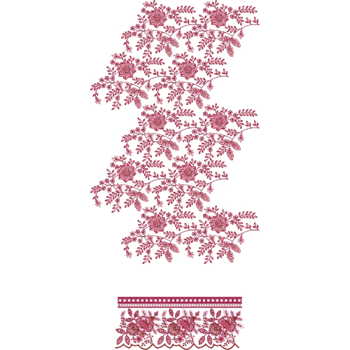 The flowing branch structure creates a seamless connection between all motifs, forming a complete all-over embroidery pattern with a refined decorative look. The combination of detailed flowers, leaves, and curved stems enhances the beauty of the jaal and gives it a classic traditional embroidery style suitable for elegant full-coverage designs.