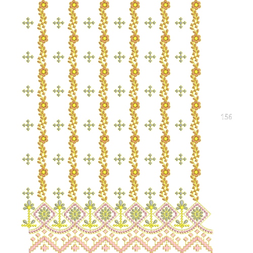 Elegant Floral Lace Embroidery Design with Vertical Vine Pattern and Decorative Border