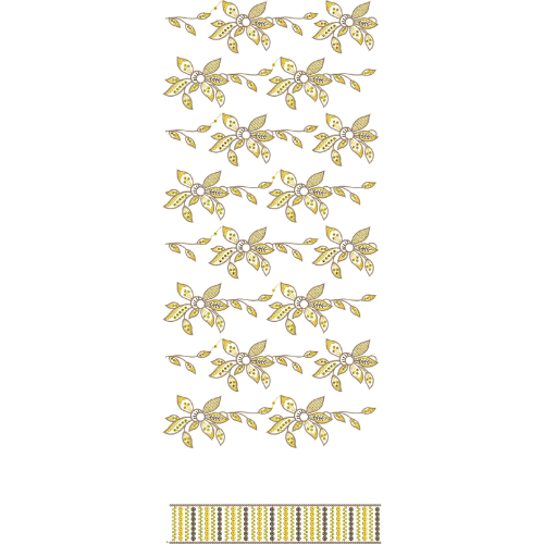 This all-over jaal embroidery design features a graceful arrangement of floral and leaf vine motifs flowing in a balanced and continuous repeat pattern. The composition is structured in horizontal alignment where each floral unit is connected through delicate stems and extended leafy branches, forming a smooth and visually pleasing jaal layout. The spacing between motifs is carefully maintained to ensure clarity and symmetry throughout the design.