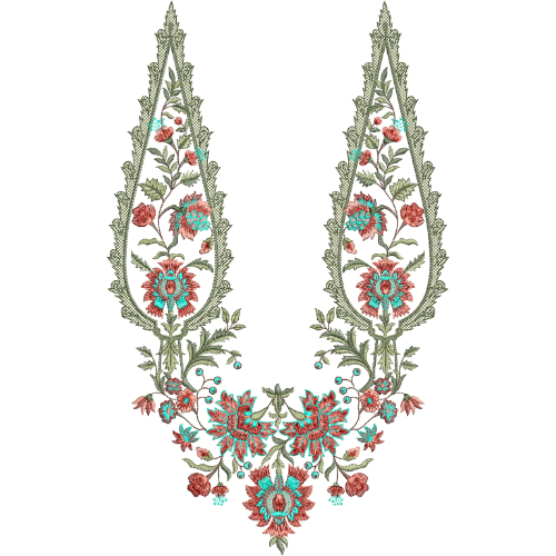 Fashion designers, embroidery digitizers, and boutique brands can use this embroidery pattern for designer kurtis, festive dresses, formal ethnic outfits, and ready-to-wear collections. It is an excellent choice for those searching for U-neck embroidery designs, floral kurti gala embroidery patterns, or stylish ethnic embroidery ideas.