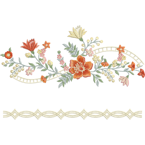 Elegant Floral Vine Lace Embroidery with Looping Ribbon Detail