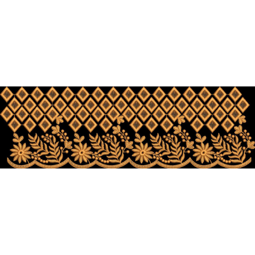The gold-on-black color palette gives the design a rich and luxurious aesthetic, making it suitable for festive and formal textile applications. This border design is ideal for saree edges, dupatta borders, lehenga hems, shawls, kurta borders, and decorative home textile accents. Its combination of geometric precision and floral elegance makes it perfect for high-end fashion and premium textile collections.