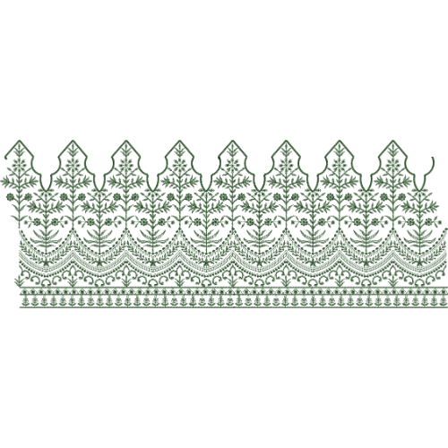 Elegant Green Embroidered Floral Border with Scalloped Arch Design
