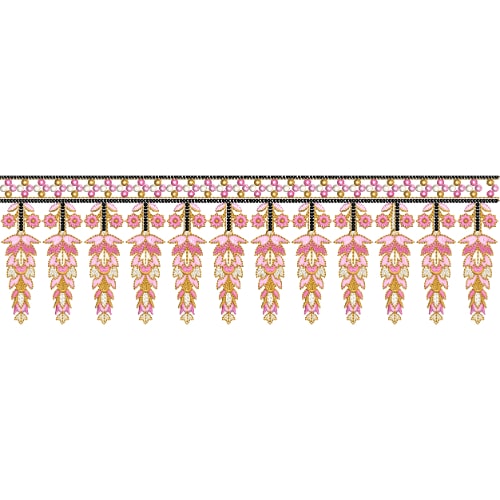 Elegant Hanging Floral Lace Embroidery Border Design with Layered Leaf Motifs