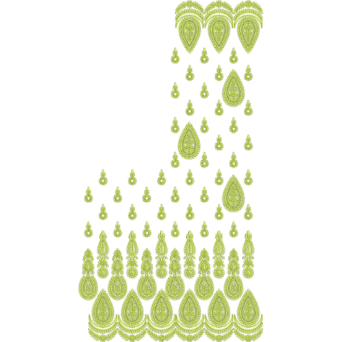 This embroidery design is ideal for sarees and ethnic wear, offering a harmonious blend of classic paisley artistry, layered motif placement, and elegant ornamental detailing.