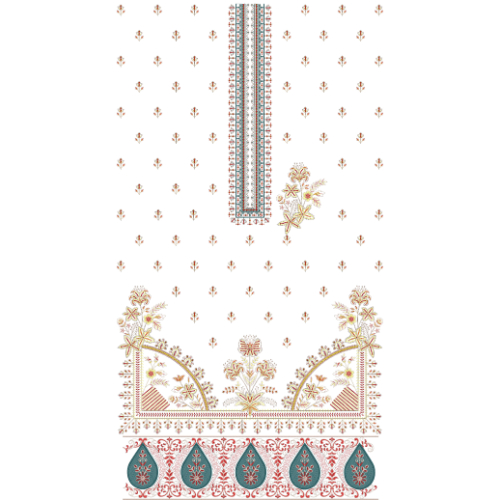 A decorative lower border featuring teardrop-inspired shapes and intricate ornamental patterns completes the composition with a polished and luxurious finish. Ideal for designer dresses, festive wear, luxury kurtis, and elegant ethnic outfits, this embroidery pattern reflects timeless craftsmanship and artistic beauty, making it perfect for high-end fashion garments seeking a graceful and sophisticated embroidered statement.