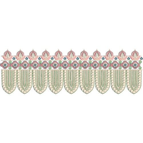 Elegant Multicolor Lace Embroidery Border Design with Geometric Band and Hanging Scalloped Details