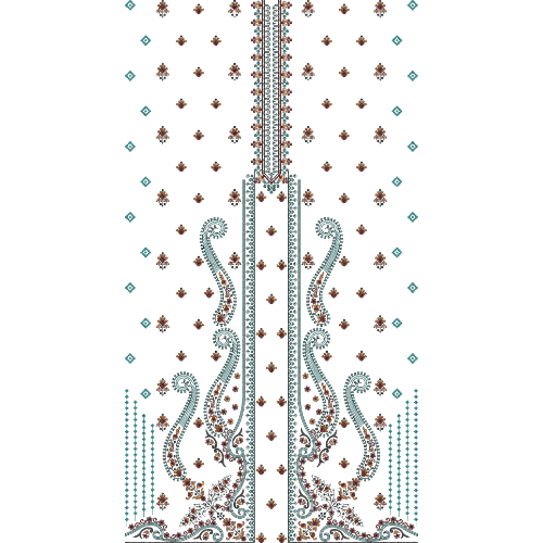 Elegant Multicolor Paisley and Floral Neckline Embroidery Dress Design with Geometric Accents