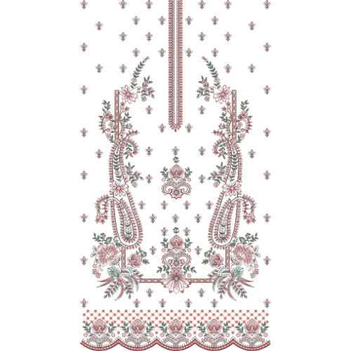Elegant Multicolor Paisley and Floral Neckline Embroidery Dress Design with Ornamental Border