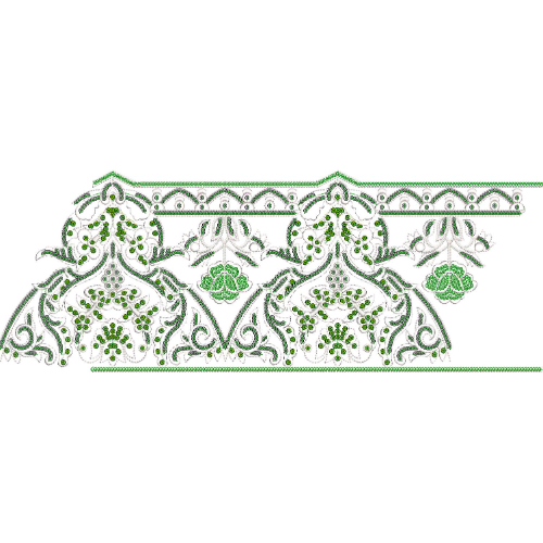 The embroidery reflects high-quality Wilcom digitizing, with precise stitch control, smooth curves, and consistent density ensuring clarity in both fine and complex elements. This design is ideal for decorative borders, elegant garment accents, and refined lace applications, offering a graceful blend of ornamental richness and delicate detailing.