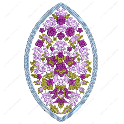Elegant Oval Floral Embroidery Design with Layered Blossoms and Decorative Border