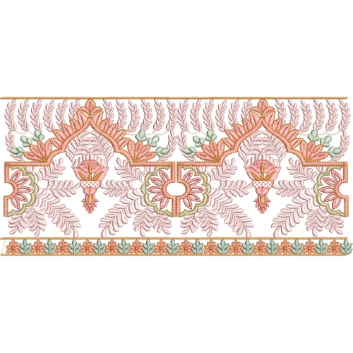 Elegant Pastel Floral Lace Embroidery Border Design with Leaf Detailing and Ornamental Motifs