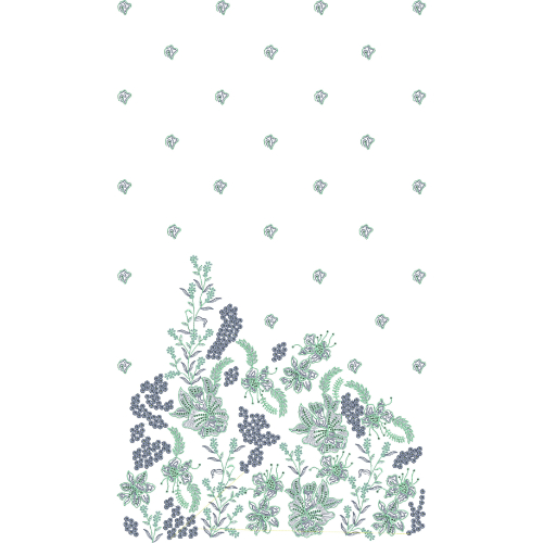 Ideal for designer dresses, luxury kurtis, festive wear, and elegant ethnic outfits, this embroidery pattern reflects timeless craftsmanship and delicate floral artistry. Its soft botanical detailing and balanced composition make it perfect for high-end fashion garments seeking a graceful and sophisticated embroidered statement.