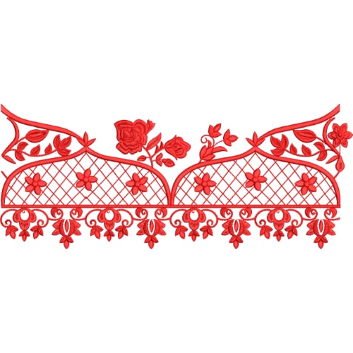 Elegant Red Floral Lace Embroidery Border Design with Net Fill and Hanging Details