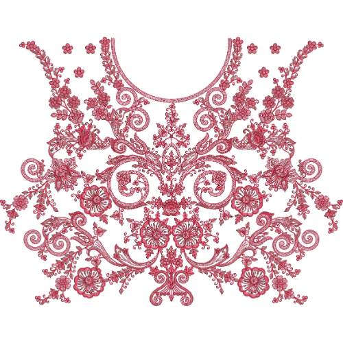 Optimized for Wilcom embroidery digitizing and machine embroidery production, this design ensures smooth stitching, fine detailing, and professional-quality finishing. A perfect choice for fashion designers, embroidery digitizers, and textile brands looking for a sophisticated red floral neckline embroidery design that combines traditional elegance with modern fashion aesthetics.