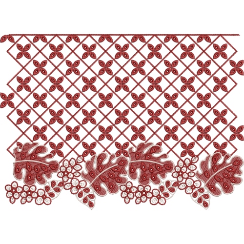 Elegant Red Lace Embroidery Design with Floral Net Pattern and Decorative Border