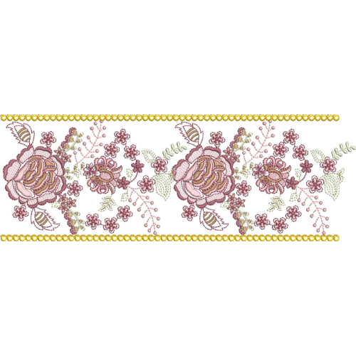 Elegant Rose Floral Lace Embroidery Border with Delicate Vine Detailing