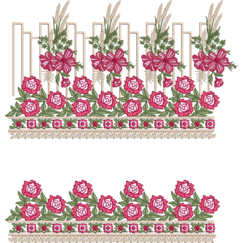 Elegant Rose Garden Lace Embroidery with Layered Floral Border and Geometric Accents