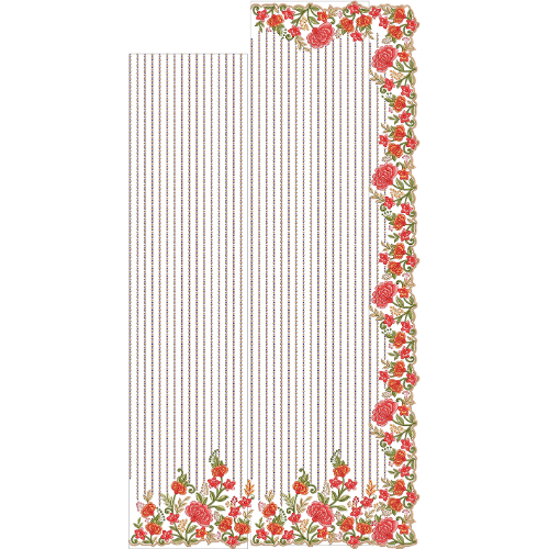 Along one side, a continuous floral border runs vertically, composed of beautifully crafted roses and blooming flowers in vibrant shades of red and soft orange. The flowers are enhanced with finely detailed leaves in natural green tones, giving the border a lively and graceful appearance. The same floral detailing extends along the bottom edge, forming a cohesive and well-balanced frame.
