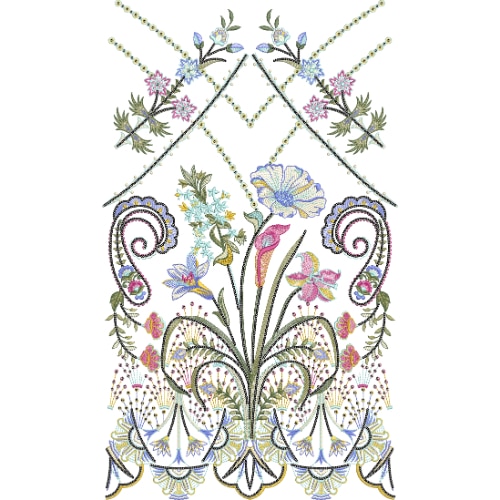 Elegant Symmetrical Floral Lace Embroidery Design with Ornamental Swirls and Fine Detailing