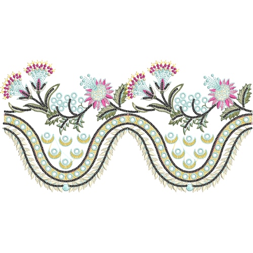Elegant Wavy Floral Lace Embroidery Border Design with Multicolor Decorative Elements