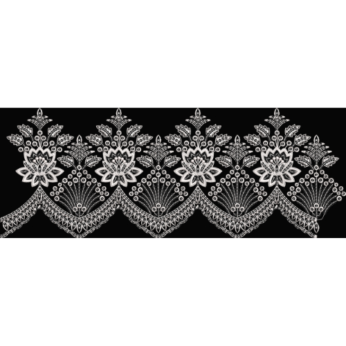 The scalloped lower border is richly detailed with layered embroidery-style patterns, creating depth and a graceful wave-like movement across the design. The consistent repetition and balanced spacing give the border a refined and elegant appearance.