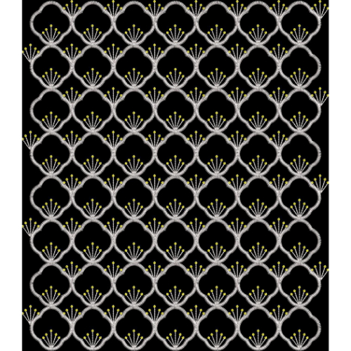 Elegant White Floral Lattice Pattern Design with Yellow Accents on Black Background for Textile Prints