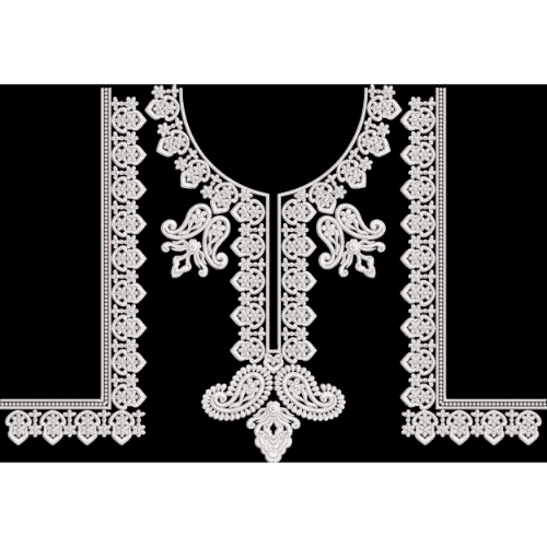 This design is especially suitable for women’s kurti necklines, formal suits, bridal wear, abayas, kaftans, and luxury textile applications. It can also be adapted for machine embroidery, digital printing, fashion illustrations, and premium garment panels where a classic, timeless, and sophisticated look is desired.