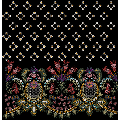 This artwork is ideal for saree pallus, dupatta and lehenga borders, kurti hems, festive and bridal garments, shawls, and luxury ethnic home décor textiles. Created in high-resolution JPG format at 300 DPI, this illustration ensures crisp stitch clarity, vibrant color definition, and professional-quality results for both digital and printed textile production.